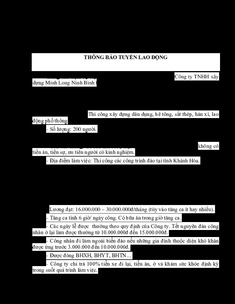 | Tiêu đề văn bản | THÔNG BÁO TUYỂN LAO ĐỘNG | ||