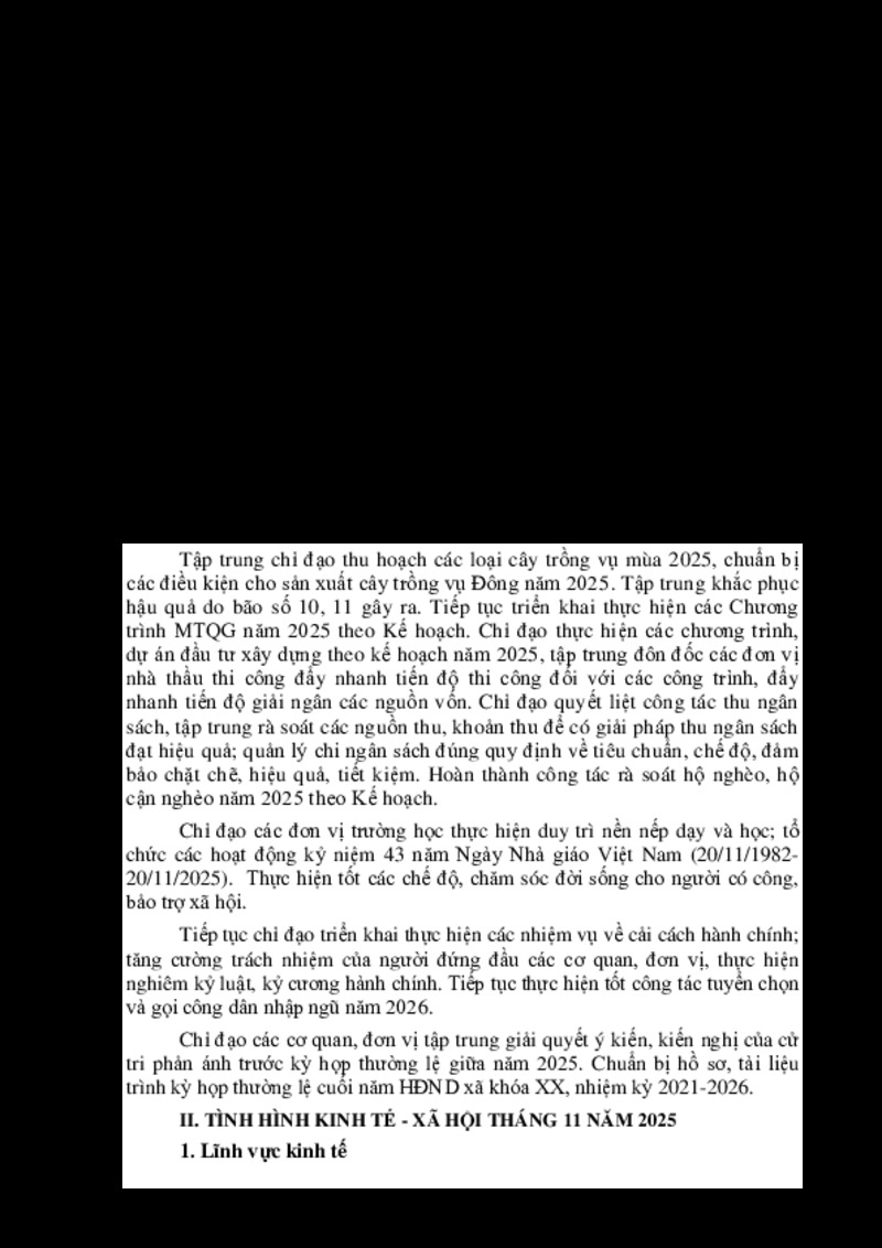 | Tiêu đề văn bản | BÁO CÁO Tình hình thực hiện kế hoạch phát triển kinh tế - xã hội tháng 11; nhiệm vụ trọng tâm tháng 12 năm 2025 | ||