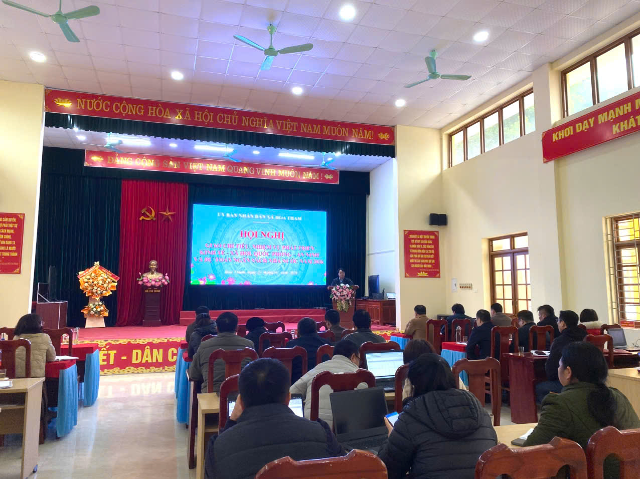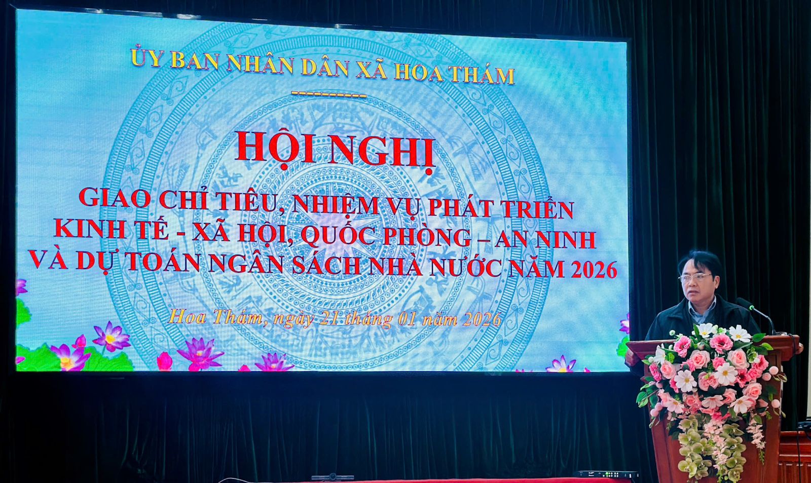 Sáng ngày 21/01/2026, Ủy ban nhân dân xã Hoa Thám tổ chức Hội nghị giao chỉ tiêu, nhiệm vụ phát triển kinh tế – xã hội, quốc phòng – an ninh và dự toán ngân sách nhà nước năm 2026. Tham dự hội nghị có các đồng chí lãnh đạo Đảng ủy, HĐND, UBND xã; đại diện Ủy ban MTTQ Việt Nam xã; lãnh đạo các cơ quan, đơn vị, trường học, thôn bản trên địa bàn xã.