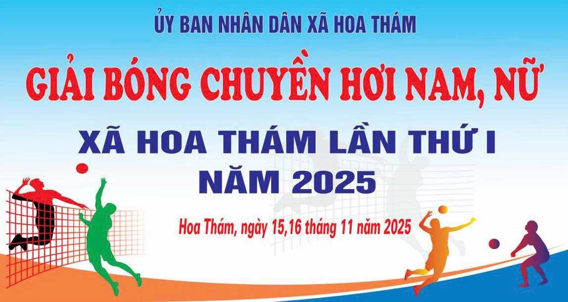 💐 Thiết thực chào mừng 95 năm Ngày truyền thống Mặt trận Tổ quốc Việt Nam (18/11/1930 – 18/11/2025) và 43 năm Ngày Nhà giáo Việt Nam (20/11/1982 – 20/11/2025), Ủy ban nhân dân xã Hoa Thám tổ chức Giải bóng chuyền hơi nam, nữ lần thứ I năm 2025.