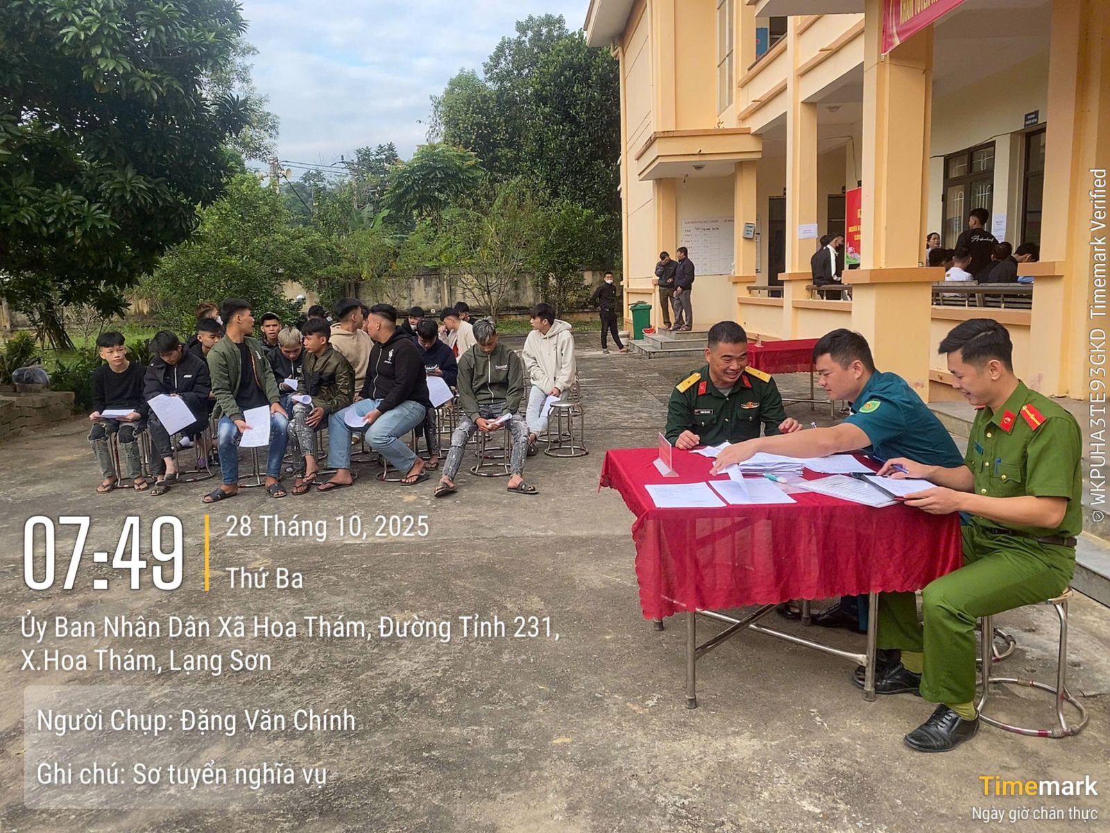 Ngày 28/10/2025, Hội đồng Nghĩa vụ quân sự xã Hoa Thám đã tổ chức khám sơ tuyển và xét duyệt công dân khám sức khỏe thực hiện Nghĩa vụ quân sự và nghĩa vụ tham gia Công an nhân dân năm 2026, khẳng định tinh thần trách nhiệm cao của cấp ủy, chính quyền và tuổi trẻ địa phương.