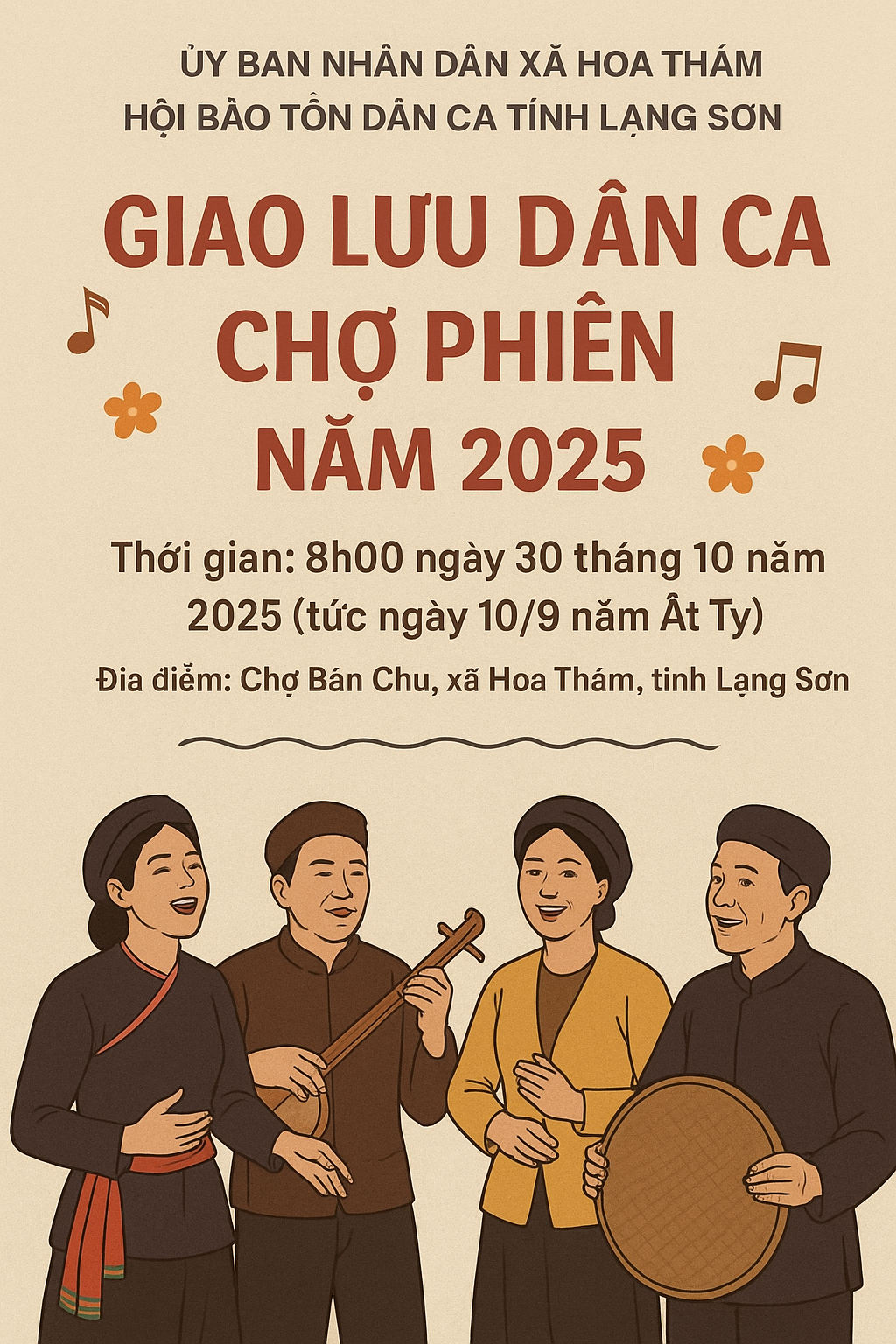 🌸 Nhằm gìn giữ và phát huy giá trị văn hóa dân gian truyền thống của quê hương, UBND xã Hoa Thám phối hợp với Hội Bảo tồn Dân ca tỉnh Lạng Sơn tổ chức Chương trình Giao lưu Dân ca Chợ phiên năm 2025.