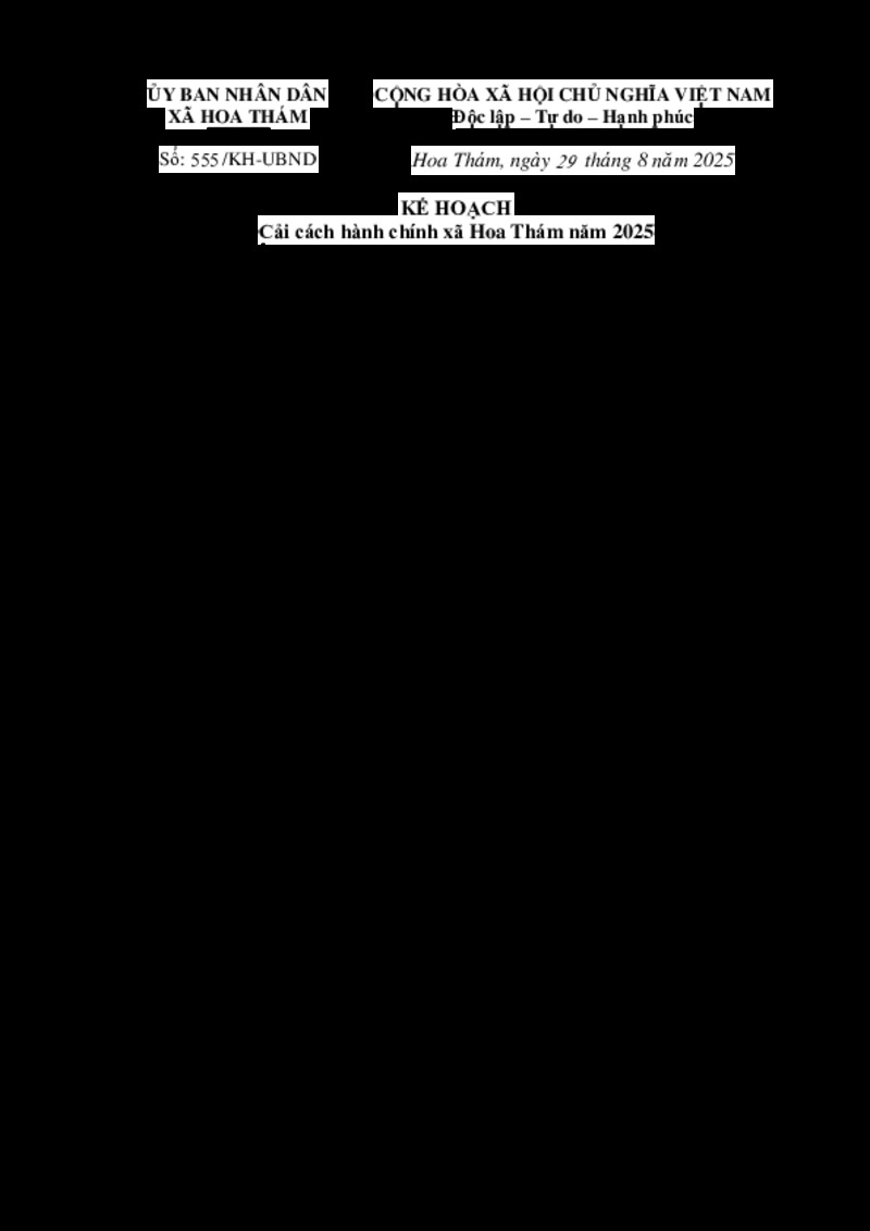 KẾ HOẠCH Cải cách hành chính xã Hoa Thám năm 2025