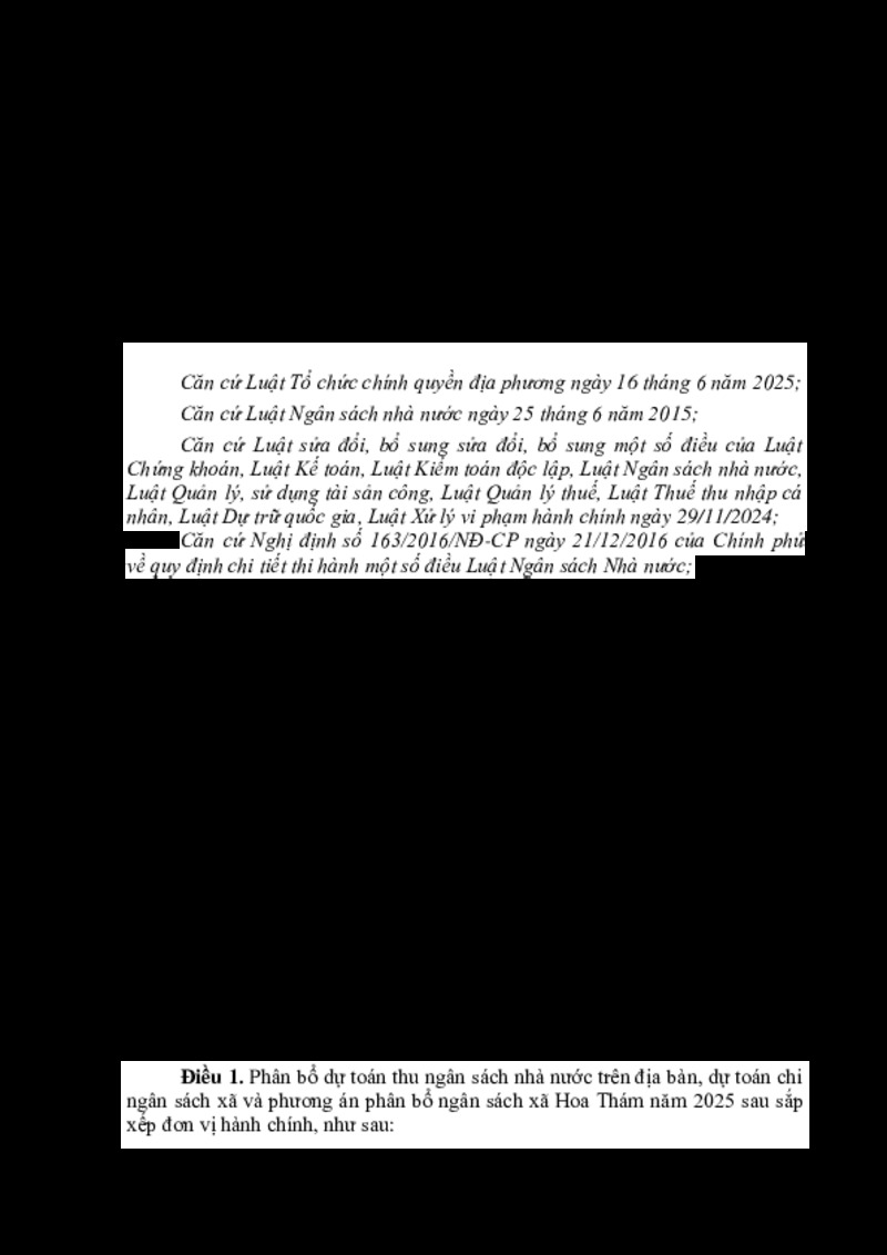 | Tiêu đề văn bản | NGHỊ QUYẾT Về việc phân bổ dự toán thu ngân sách nhà nước trên địa bàn, dự toán chi ngân sách xã và phương án phân bổ ngân sách xã Hoa Thám năm 2025 | ||