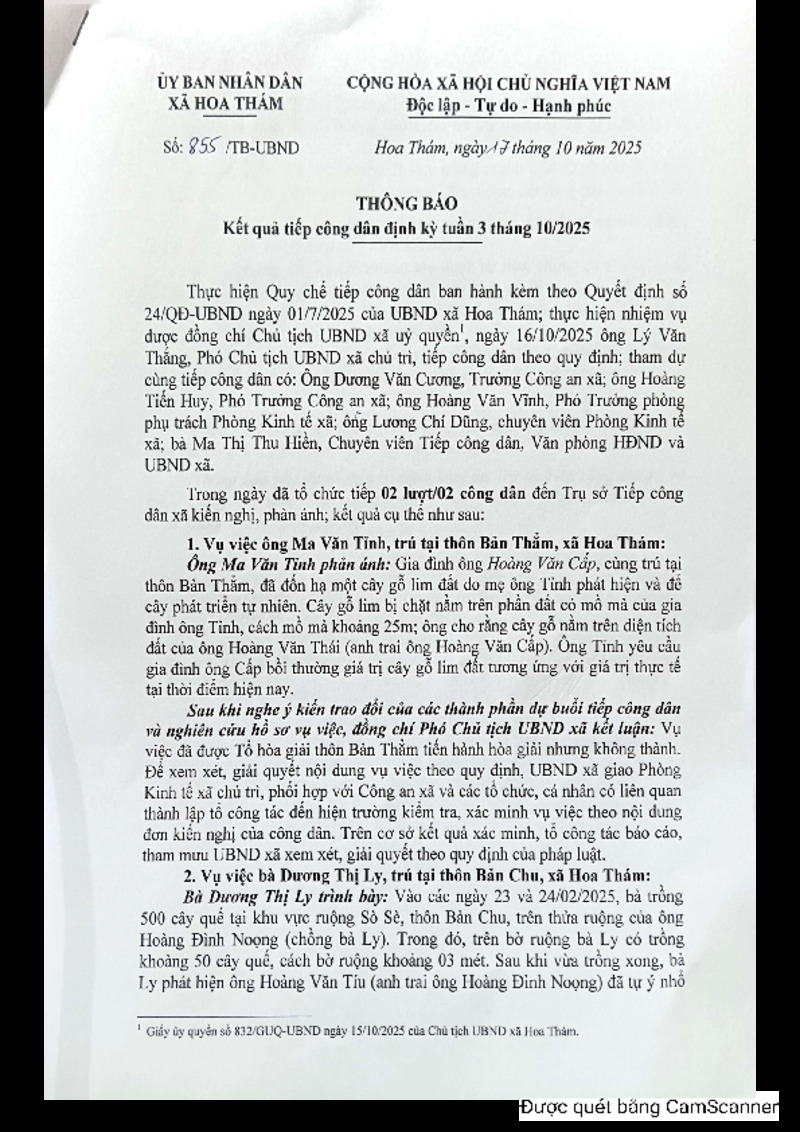 | Tiêu đề văn bản | THÔNG BÁO Kết quả tiếp công dân định kỳ tuần 3 tháng 10/2025 | ||
